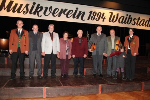 zum Musikverein erhielten Ferdinand Fischer und Ottmar Lehmann, beide früher selbst aktive Musiker des Musikvereins Waibstadt, die Vereinsehrennadel in Gold mit eingravierter Zahl 60 und einem