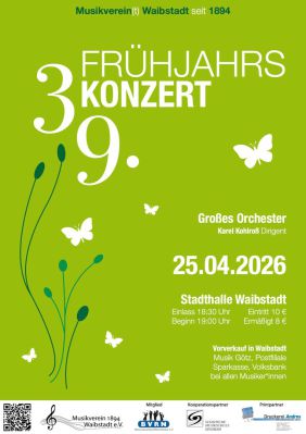 Wir laden Sie herzlich zum 39. Frühjahrskonzert unseres Großen Orchesters am Samstag, den 25. April 2026 in der Stadthalle Waibstadt ein.